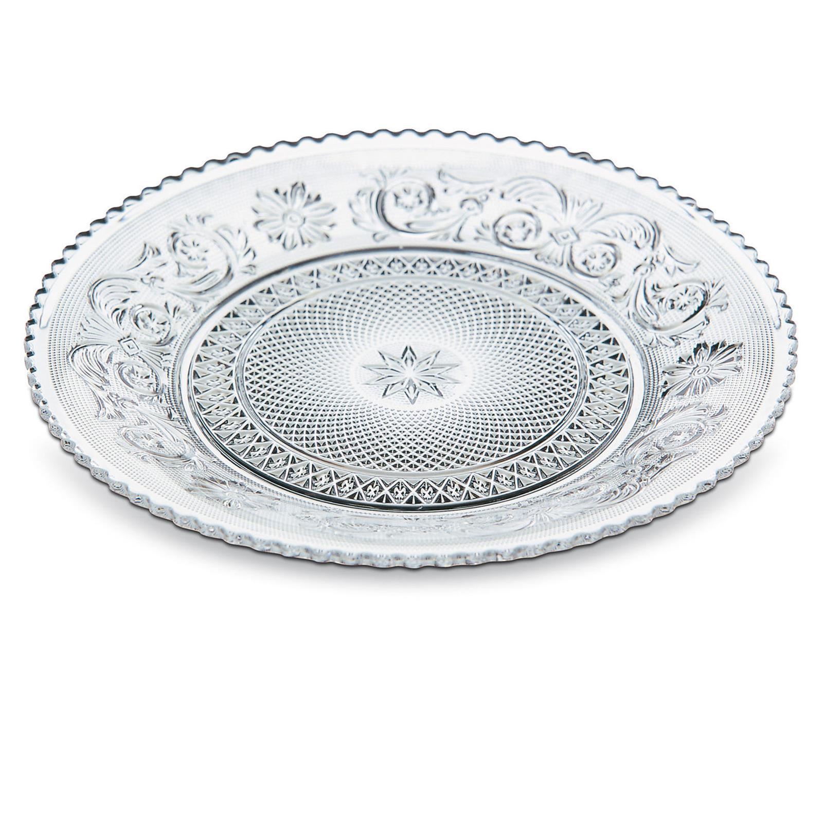 Just below, a thick belt of geometric swirls —a motif embellished with stars and acanthus leaves—wreathes around the plate. This intricate garland is hemmed in by the Clear crystal crosshatching that decorates the underside of the dessert plate. Created for Baccarat in the 19th century, this model originally encompassed a complete table set (with jug, decanter, goblets and various stemmed glasses). Today, the Arabesque collection has been pared down to the dessert plates and bowl, both of which share incredible and elaborate detailing.