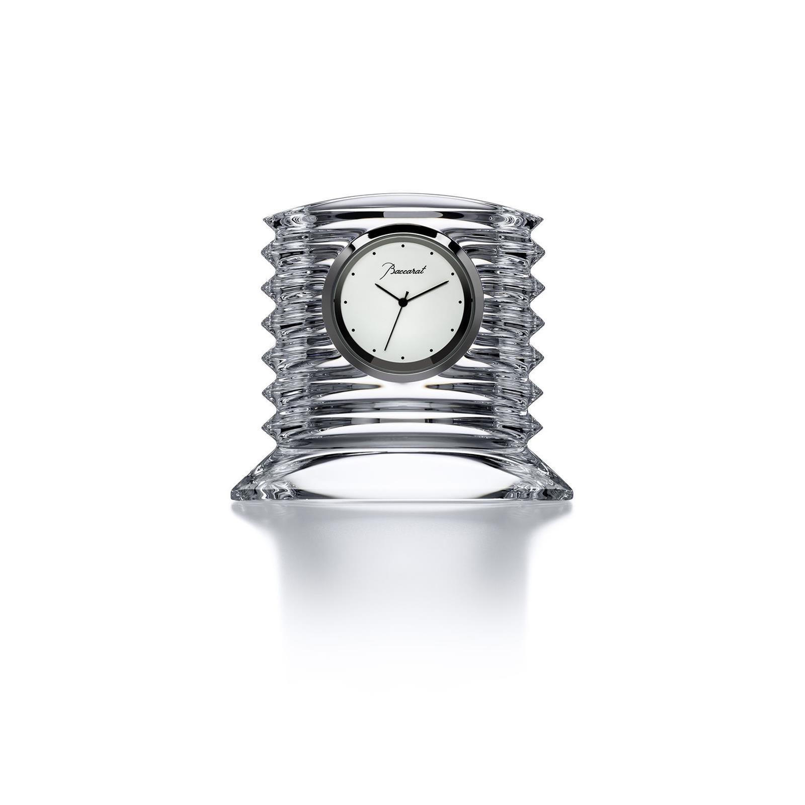 The Lalande clock features an elaborately undulating form that creates a magnificent optical effect when it interplays with the light. The circular white clock face is minimalist, with Baccarat discreetly written in elegant cursive.