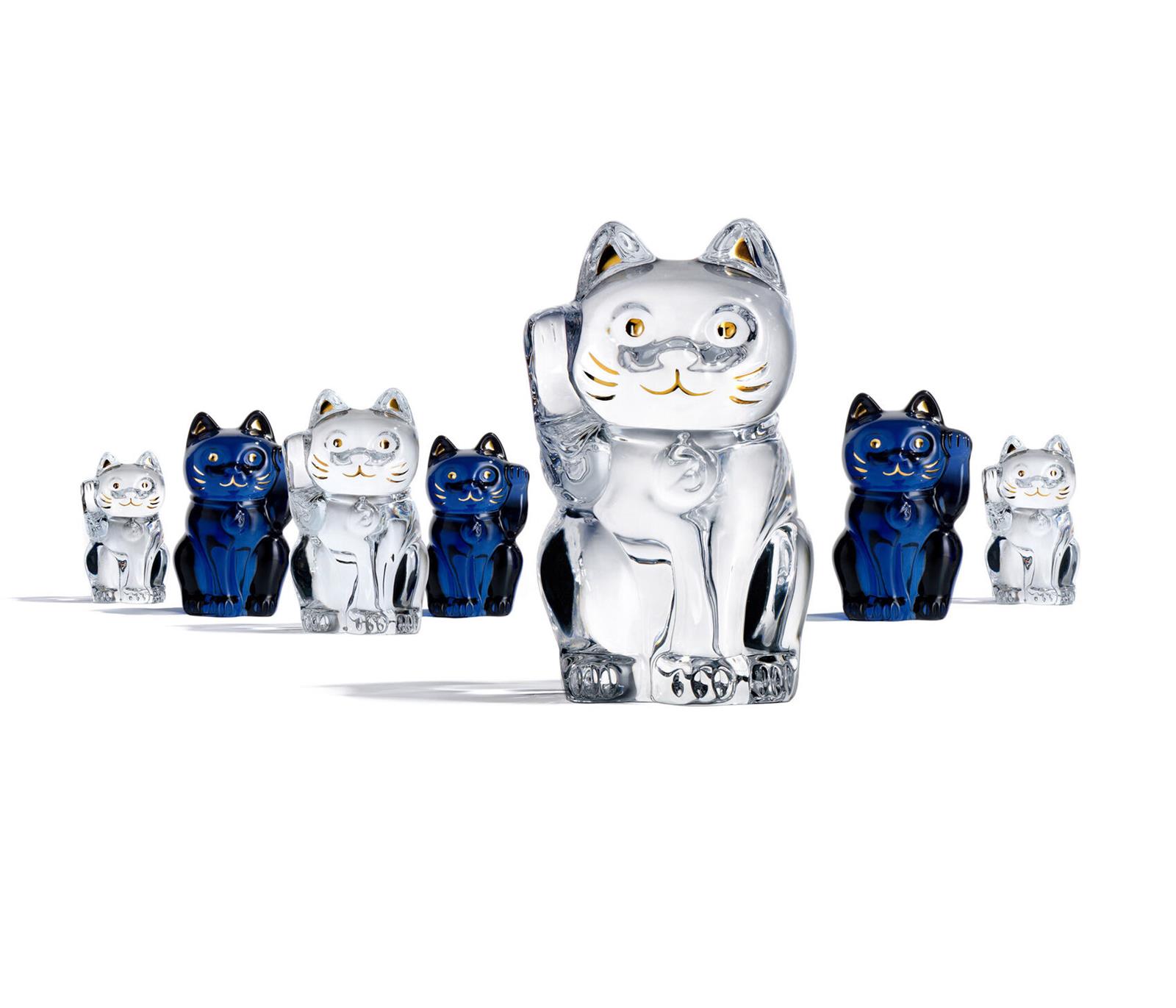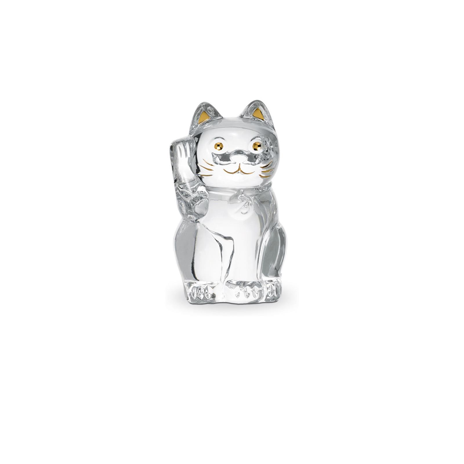 This Baccarat Clear crystal cat, or the Maneki-neko as it is called in Japanese, has a lot of careful detail. Baccarat’s painstaking techniquea are evident in the paws, the facial features, and the collar. Additional gilded flourishes are applied to the cat’s ears, eyes, mouth, and whiskers. This emblem of luck is a meticulously crafted piece that could draw good fortune directly into your home. The Lucky cat is also available in midnight crystal.