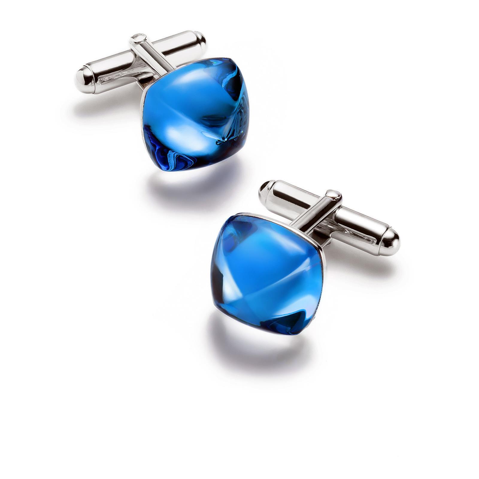 Brightly colored crystal combines perfectly with the precious silver setting of the cuff link.