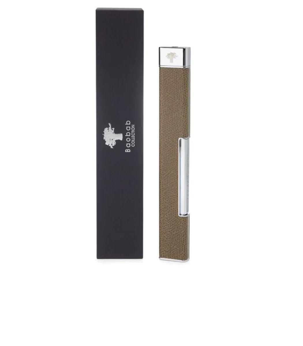 Covered in full-grain leather, the Baobab Collection lighter is a precious object meant for exhibition. Its long rectangular form is both contemporary and perfectly suited to any type of candle. A torch flame has been designed by the best of engineers in order to ensure an efficient and secure lighting.
