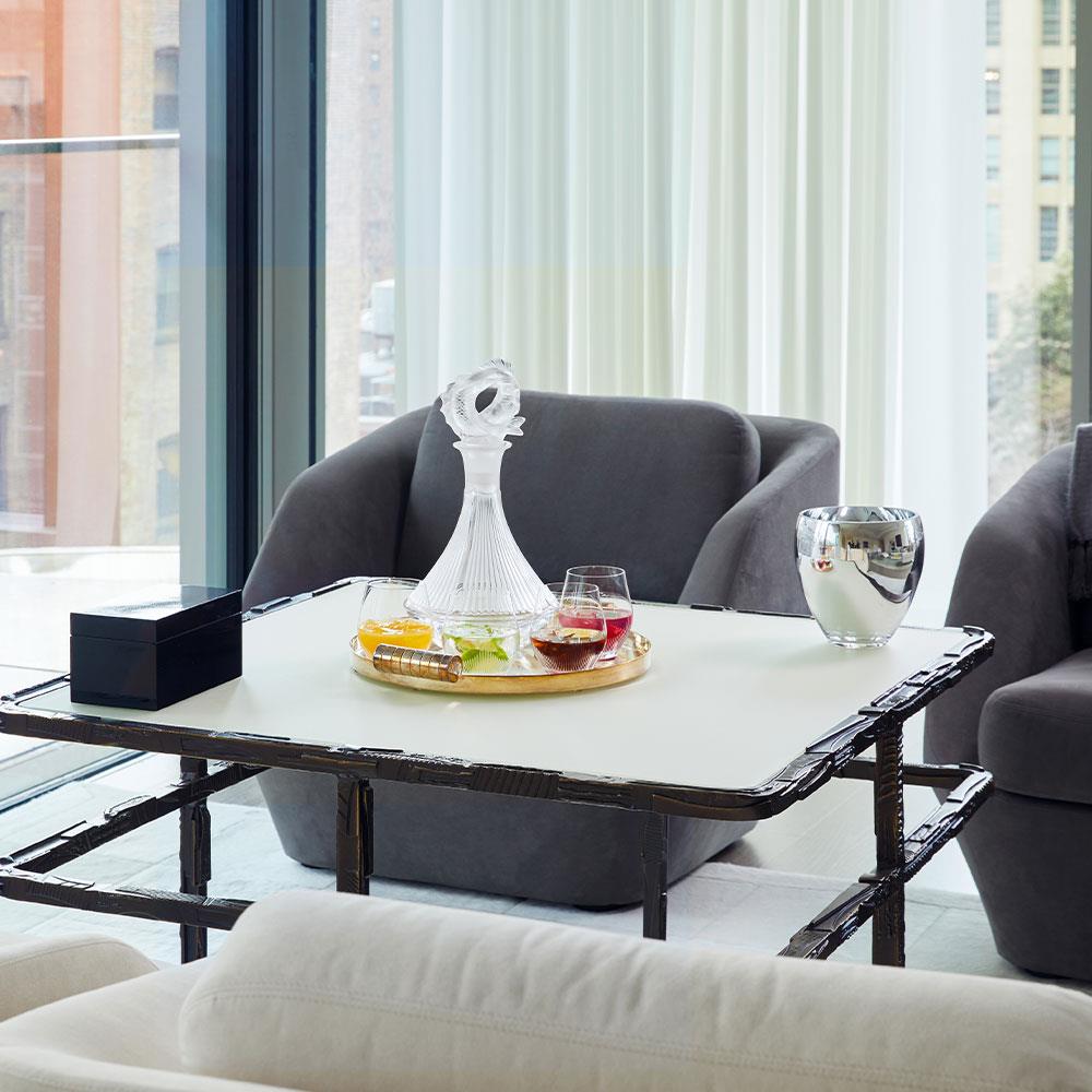 “Beautiful yet functional” is how internationally acclaimed wine critic James Suckling describes the 100 POINTS collection.With a name referring to the wine scoring system, 100 POINTS is a hand-made collection that embraces a modern design and precise utility while exemplifying the established style of Lalique: crystal fashioned by the best glass-masters, “U” shaped bowl and distinctive frosted rib stem to obtain the characteristic contrast of clear and satin-finish.