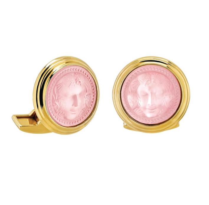 Cufflings Arethuse Round Pink Luster, Gold Plated