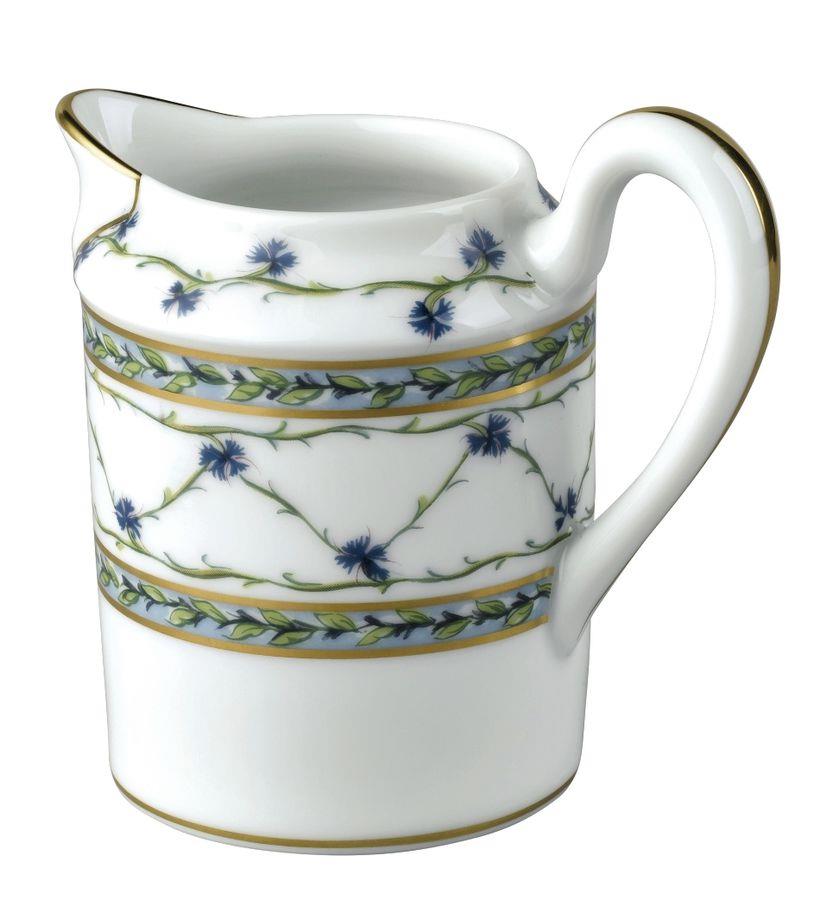 The “Allée du Roy” is one of Raynaud's classic collections, inspired by the French 18th century, which saw the creation of myriad china designs dedicated to the King and his court. A trellis entwined with leaves and cornflowers between crowns of laurels features on all pieces of the service in shades of blue and green. This frieze is finished by a central medallion of cornflowers, completing and balancing the design. Gold threads encircle and enhance the motif, as in the traditional designs of the Manufacture de Sèvres, the King's only china supplier of the time.
