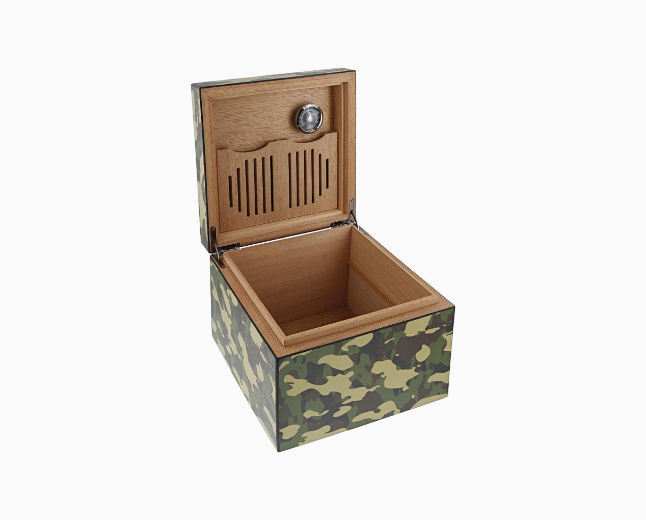 The camouflage pattern cube cigar humidor will make a real impression on those with a dynamic way of life.