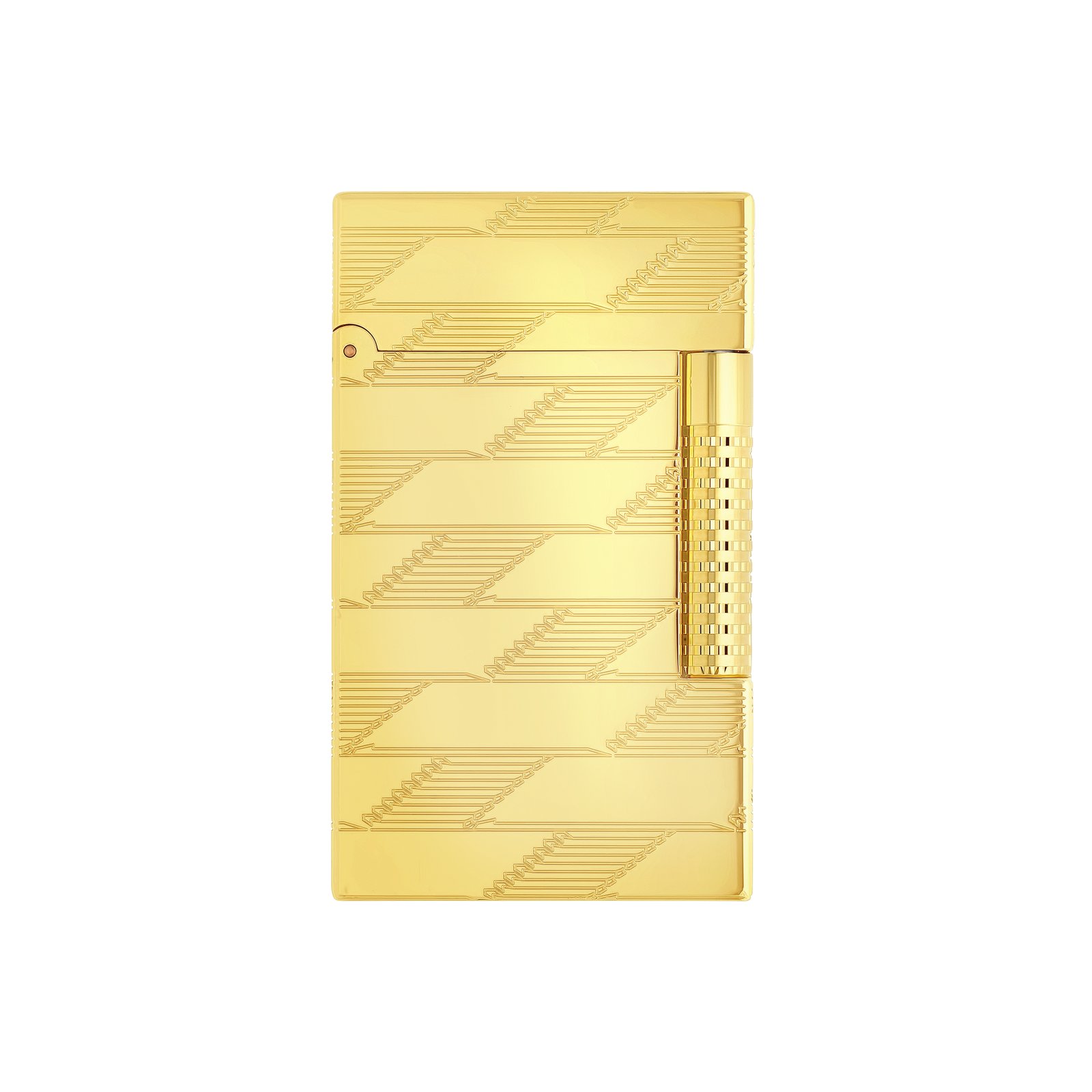 S. T. Dupont's expertise in metalwork, as well as in the art of lacquering and leather-coated canvas, comes together in the Monogram 1872 collection. Dupont expertise come together in the Monogram 1872 collection. Firmly rooted in their time, the pieces in the collection all feature the new S. T. logo. Dupont logo, straight, purposeful and proud. Le Grand Dupont lighter, guilloché decorated with the Monogram 1872 motif and finished in gold. Featuring a dual ignition system yellow flame or blue flame. “Cling” New Grand Dupont at the opening. Associated lighter stone: black (REF 900600) Associated gas refill: red (REF 900435) Lighter delivered empty of gas, refill sold separately.