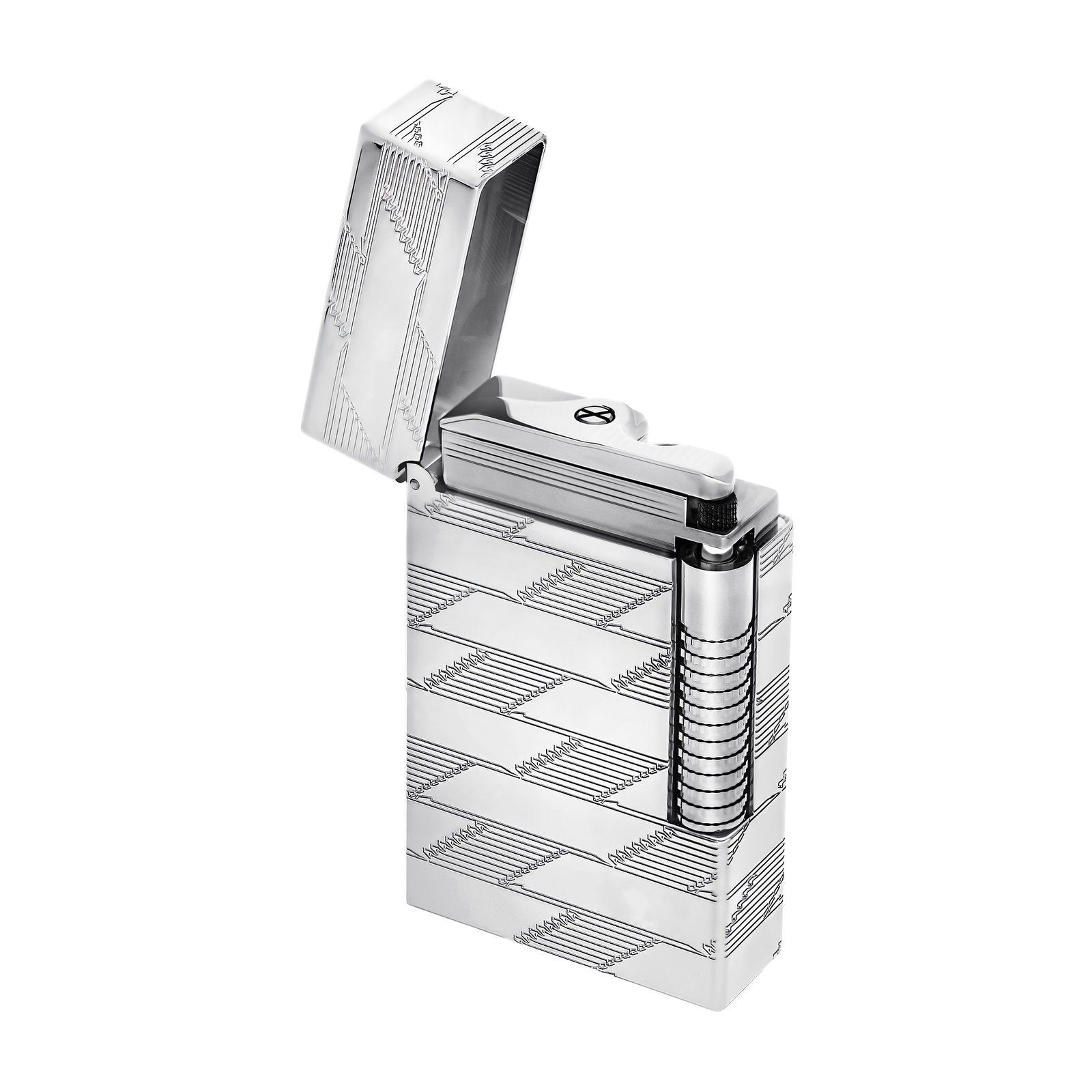 S. T. Dupont's expertise in metalwork, as well as in the art of lacquering and leather-coated canvas, comes together in the Monogram 1872 collection. Dupont expertise come together in the Monogram 1872 collection. Firmly rooted in their time, the pieces in the collection all feature the new S. T. logo. Dupont logo, straight, purposeful and proud. Le Grand Dupont lighter, guilloché decorated with the Monogram 1872 motif and finished in silver. Featuring a dual ignition system yellow flame or blue flame. “Cling” New Grand Dupont at the opening. Associated lighter stone: black (REF 900600) Associated gas refill: red (REF 900435) Lighter delivered empty of gas, refill sold separately.