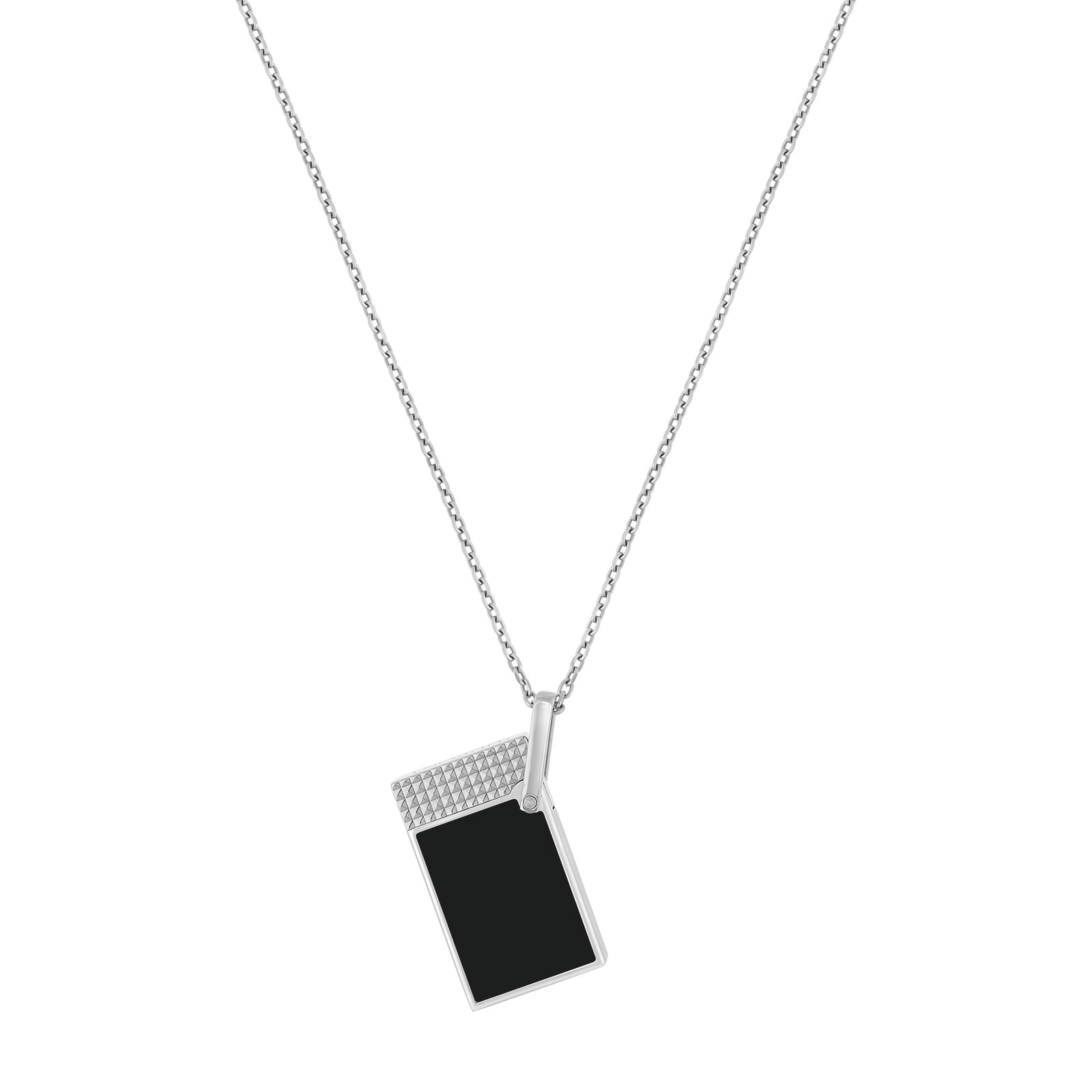 Lighter necklace glossy black lacquer in iconic guilloché diamond tip and silver finishes.
